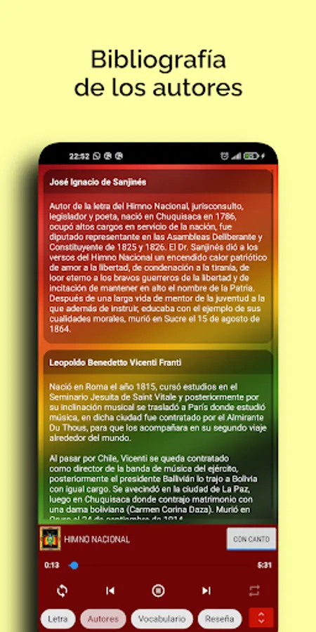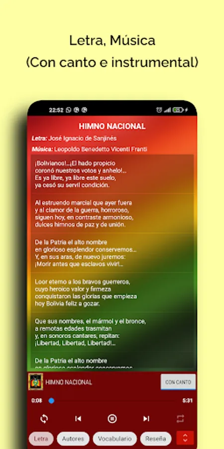 Are you looking for an app of Songs, Marches and Hymns of Bolivia?
