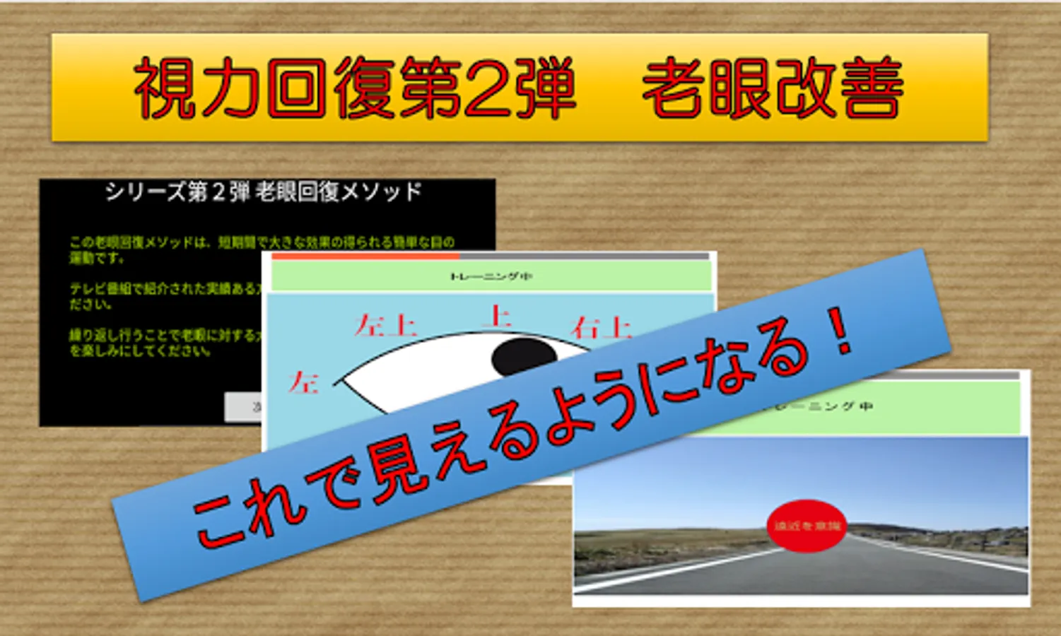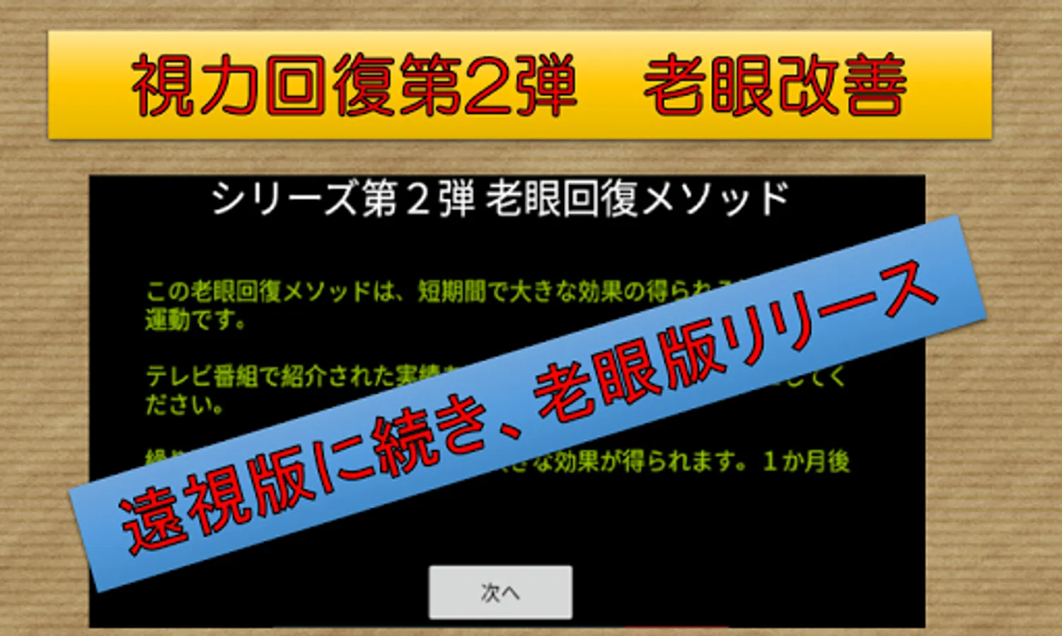 テレビ番組で紹介された眼科医が薦める老眼回復の実績あるトレーニング方法をアプリで実践。