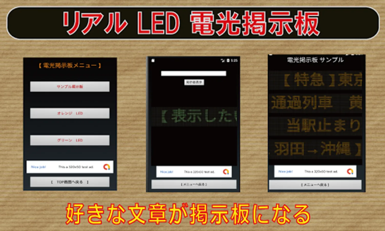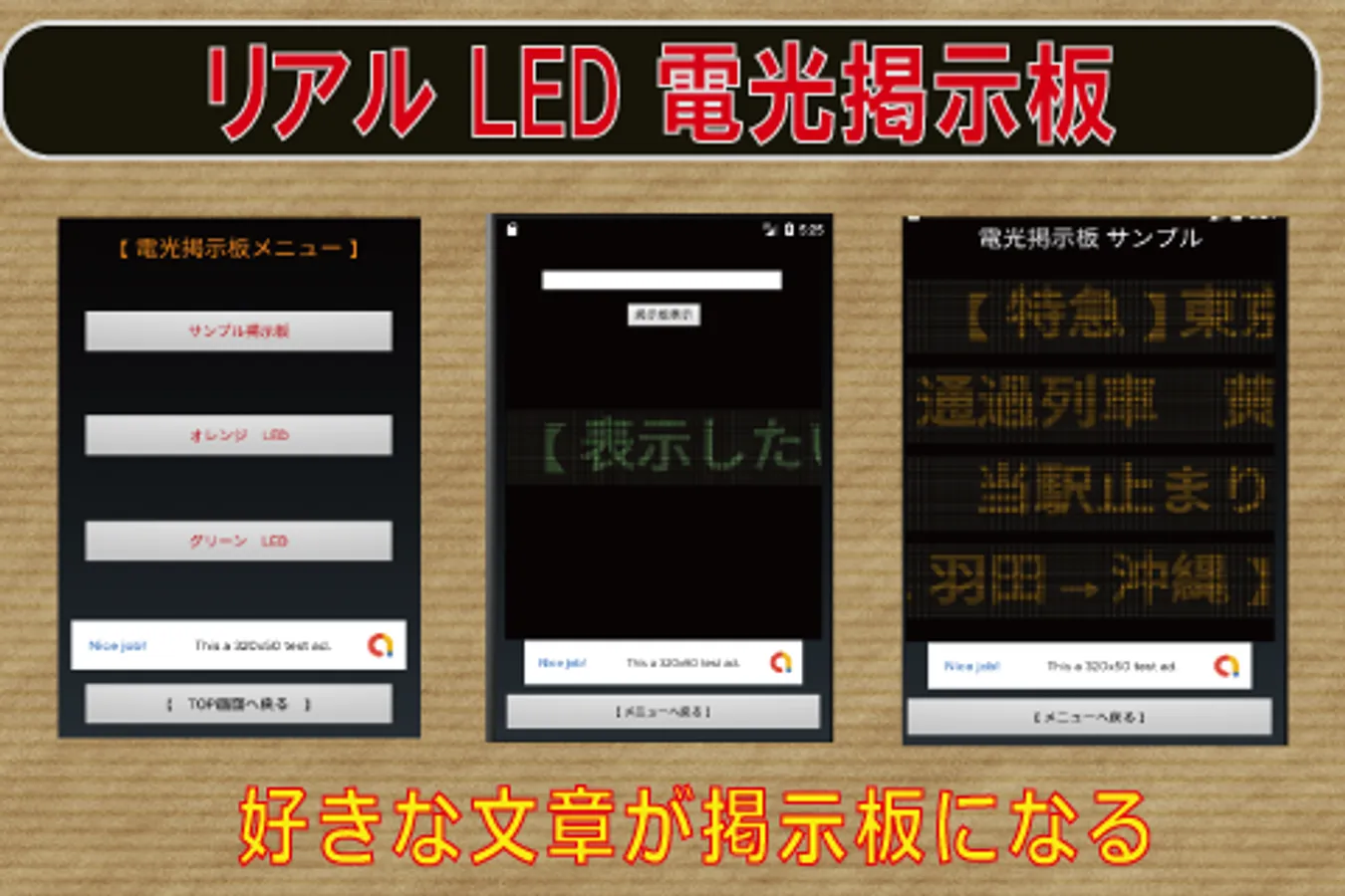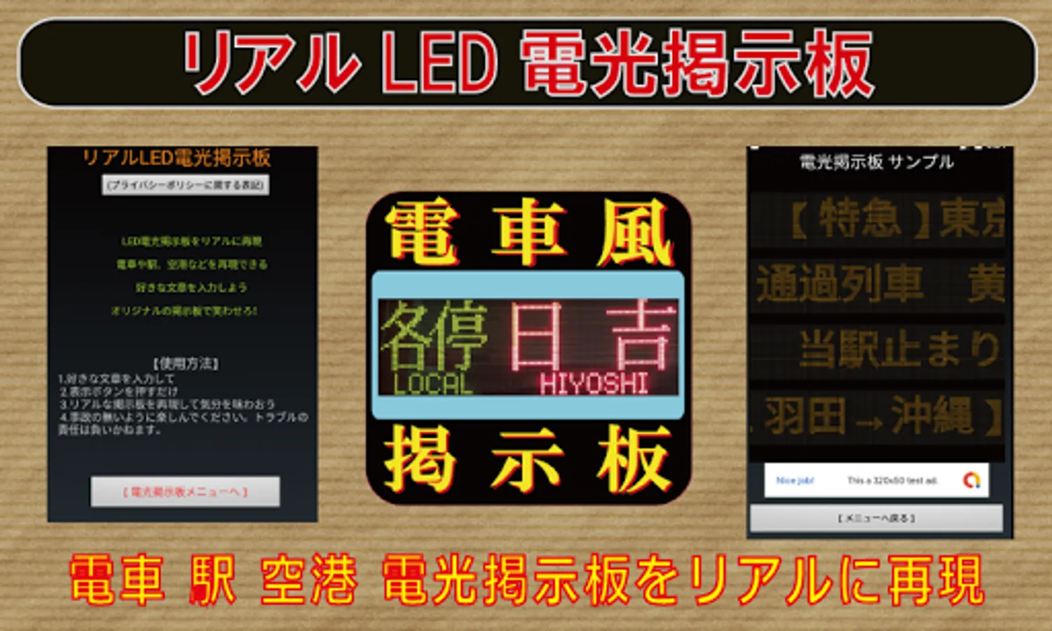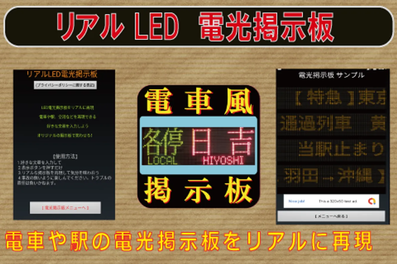 電車や駅、空港、スーパー、パトカーなどなど、電光掲示板をリアルに再現できます。