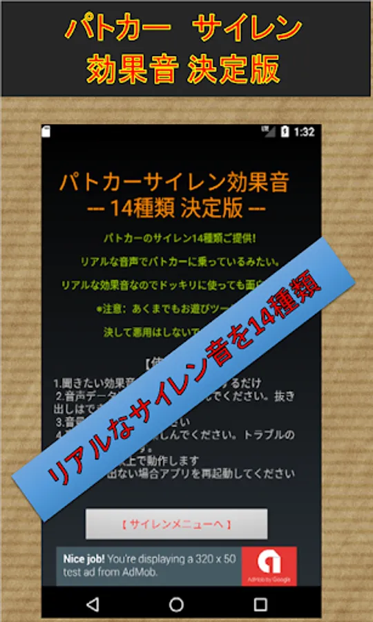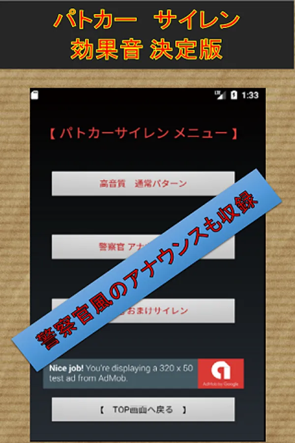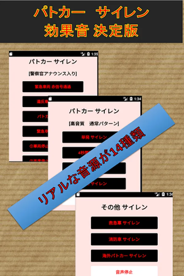子供はもちろん、大人も楽しめるパトカーサイレン効果音アプリです。