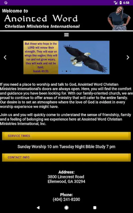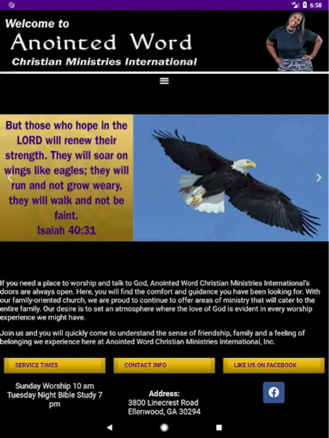 Find easy access to information about Anointed Word Christian Ministries International in Ellenwood, GA, useful resources such as maps and directions, links to all of our social media channels, and get push notifications so you’re always up-to-date.