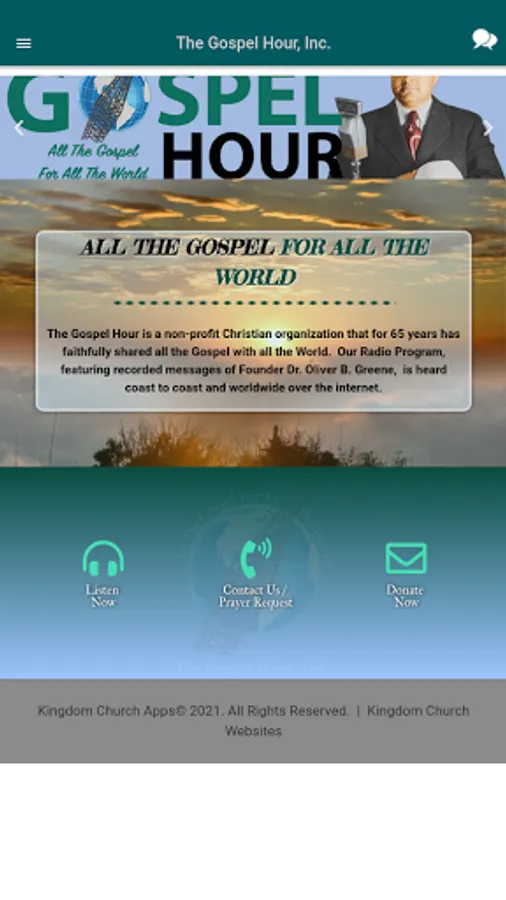 For over 65 years, The Gospel Hour, Inc (a non-profit Christian organization) has faithfully shared “all the Gospel with all the World.” We invite you to install our App and to keep in touch with this Ministry of faith.