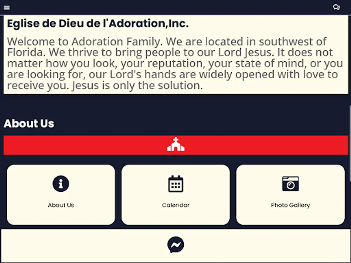 Welcome to the Eglise de Dieu de l'Adoration, Inc. mobile app, your gateway to staying connected with our community. With the Eglise de Dieu de l'Adoration, Inc. app, you'll have easy access to a range of features including sermons, an event calendar to keep up with upcoming events, a photo gallery, prayer requests, and about us and service times information to get in touch with us.