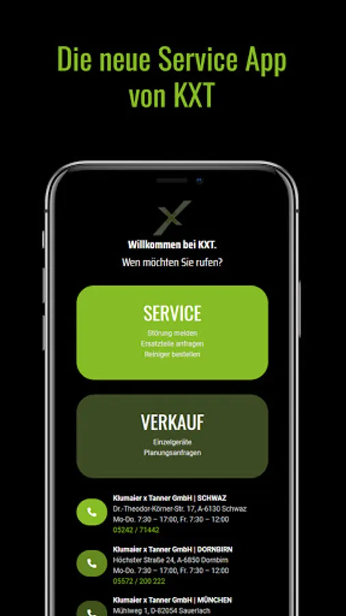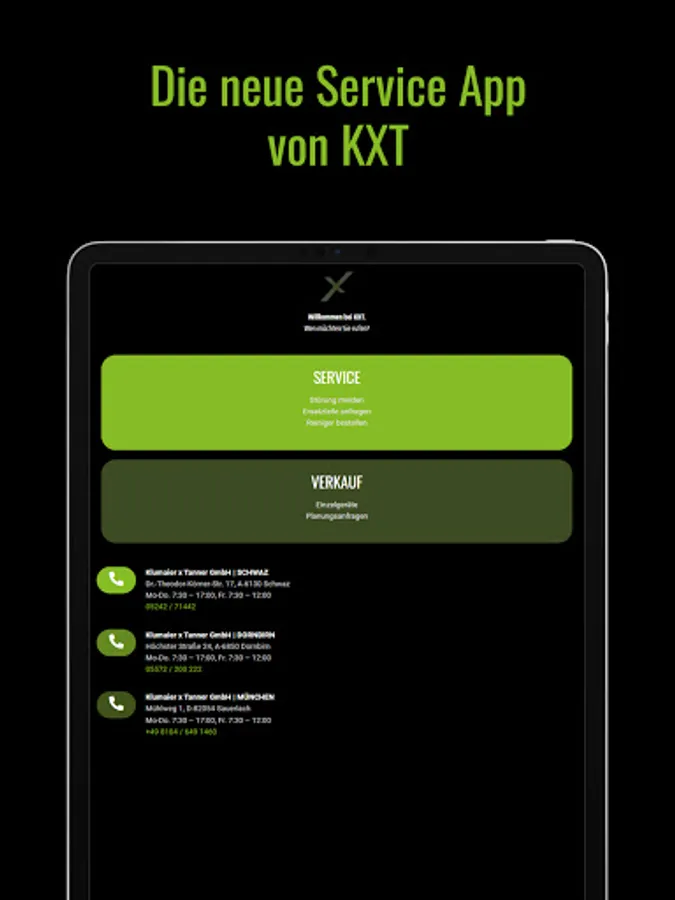 With the new KXT Service App we improve your service even more. From now on you can make service cases and sales inquiries directly via our service app. Our service or sales team will then contact you.
