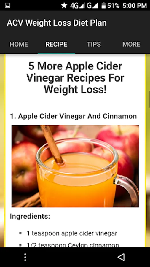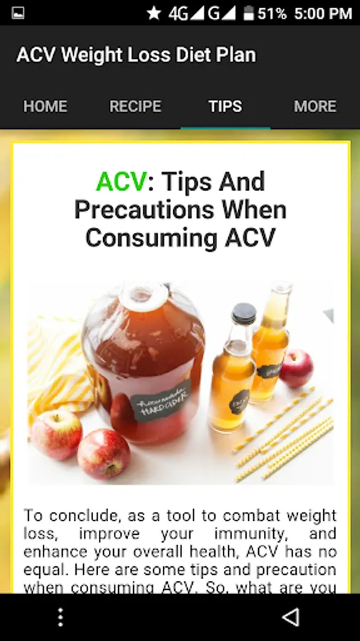 Apple Cider Vinegar Weight Loss Diet Plan app delivers simple and pack with useful content about using Apple Cider Vinegar in losing weight! The app is very informative on recent uses of ACV and include simple step by step ACV recipe that you can prepare at home. Many of people have been trying using ACV as an alternative for detox drinks and other health problems and you can learn that inside the app.