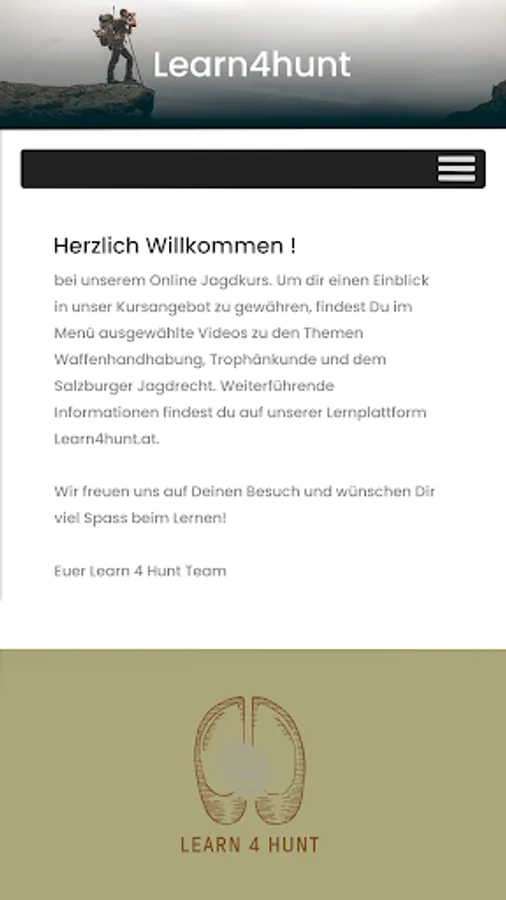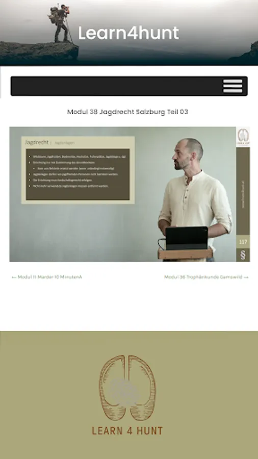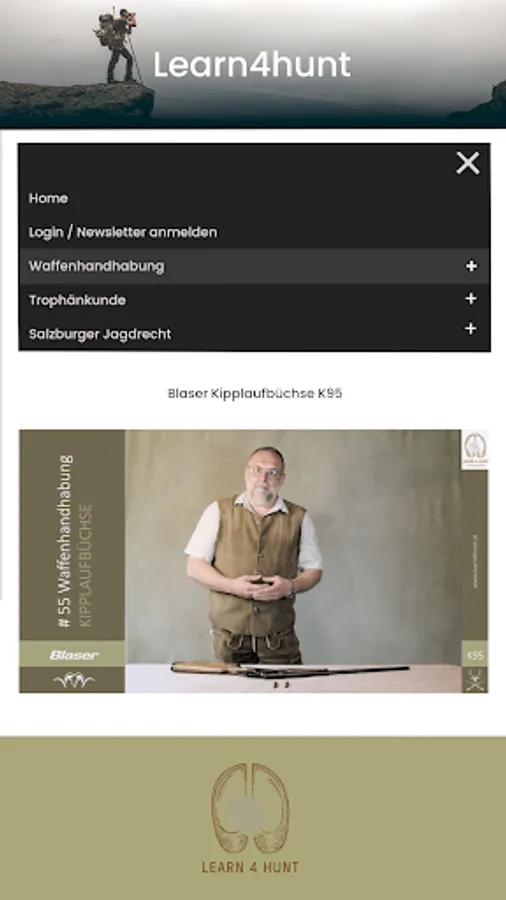 The 61 online lectures include wildlife studies on hair and feathered game relevant for hunting, such as: red deer, roe deer, chamois, ibex, wild boar, brown hare, capercaillie, black grouse, partridge, pheasant, duck, etc.) with their species-specific behavior and lifestyle (Nutrition, social behavior, rut, gestation period, rearing the young, causing damage to game etc.) as well as physical characteristics and abilities (physique, body weight, step seal, tooth development, hair and feathers, development and shape of antlers, solution, age expectancy, frequent diseases, Every hair and feathered game is shown in the course of the year (mating time, gestation time, setting time, suckling time, etc. are shown graphically) and a profile provides the most important test-relevant data at a glance.