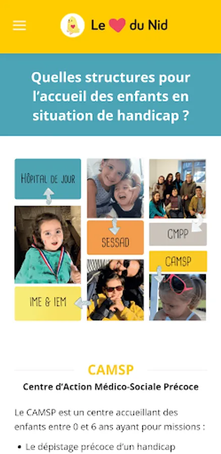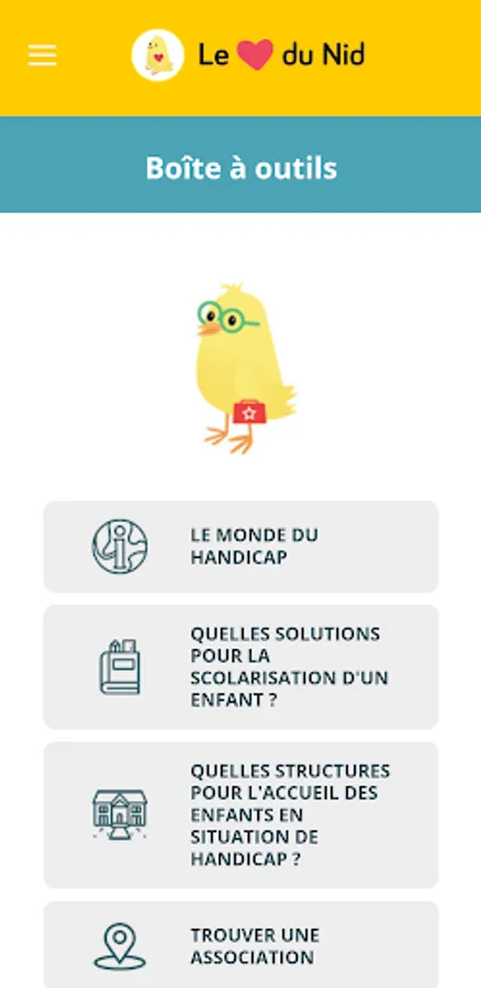The Heart of the Nid is a local application created by the association Tombée du Nid to be able to provide practical assistance to families with a disabled child or wishing to adopt.