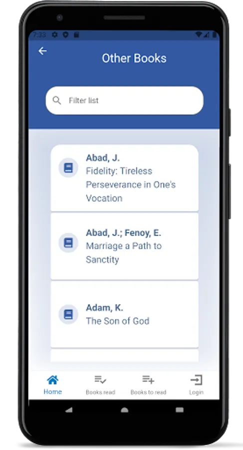 eLect offers the user a catalogue of over 600 spiritual reading books. You can create and maintain a list of books read, books you want to read, add notes and share titles.
