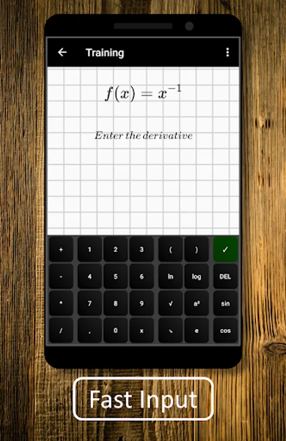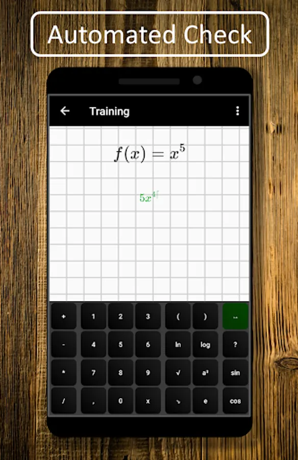 Here, you can apply your knowledge. Take the derivative of various mathematical functions! Practice your math skills and reach the next level to unlock more difficult functions! You can train on 250+ functions in 9 different levels.