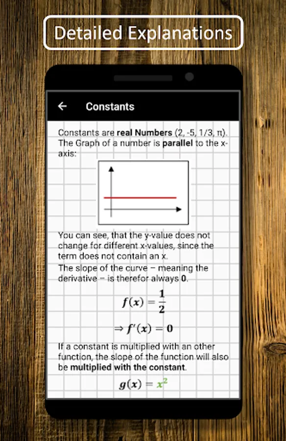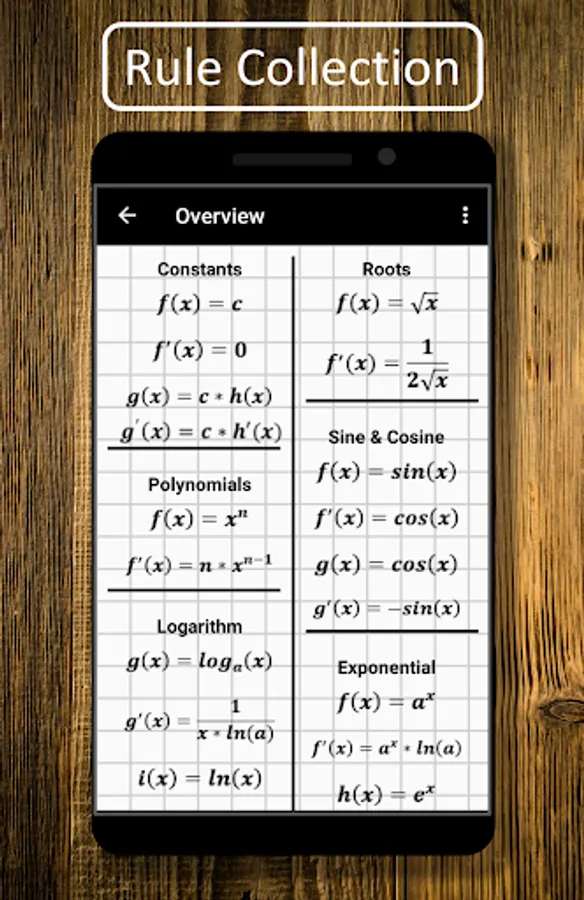 In this mode we will teach you the mathematical basics. Refresh your memory and study what a derivative is and how to differentiate different functions types! Additionally, you will learn the rules of differentiation that you will need for more complicated functions.