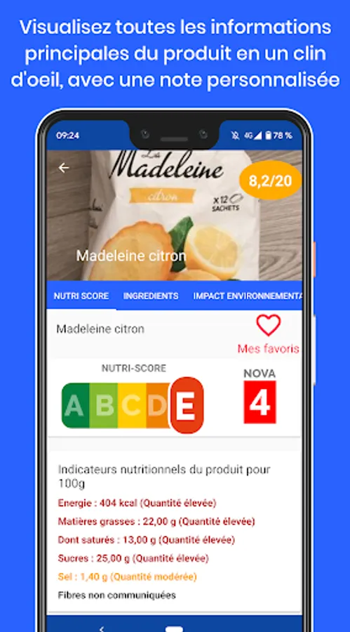 Thanks to all this information, you will finally get a personalized rating for each product, thanks to an advanced algorithm. In the blink of an eye you will know if the product is recommended or not! This rating is specific and unique to the Nutrition Score application.