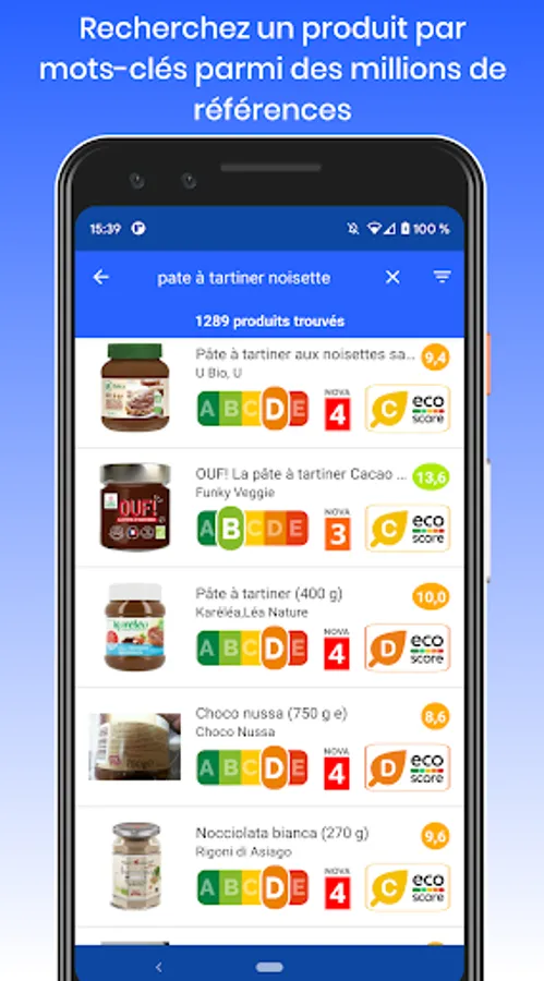 This application is intended to be simple, and gets straight to the point: display nutritional information, display the Nutri score, the eco score and display the NOVA classification.