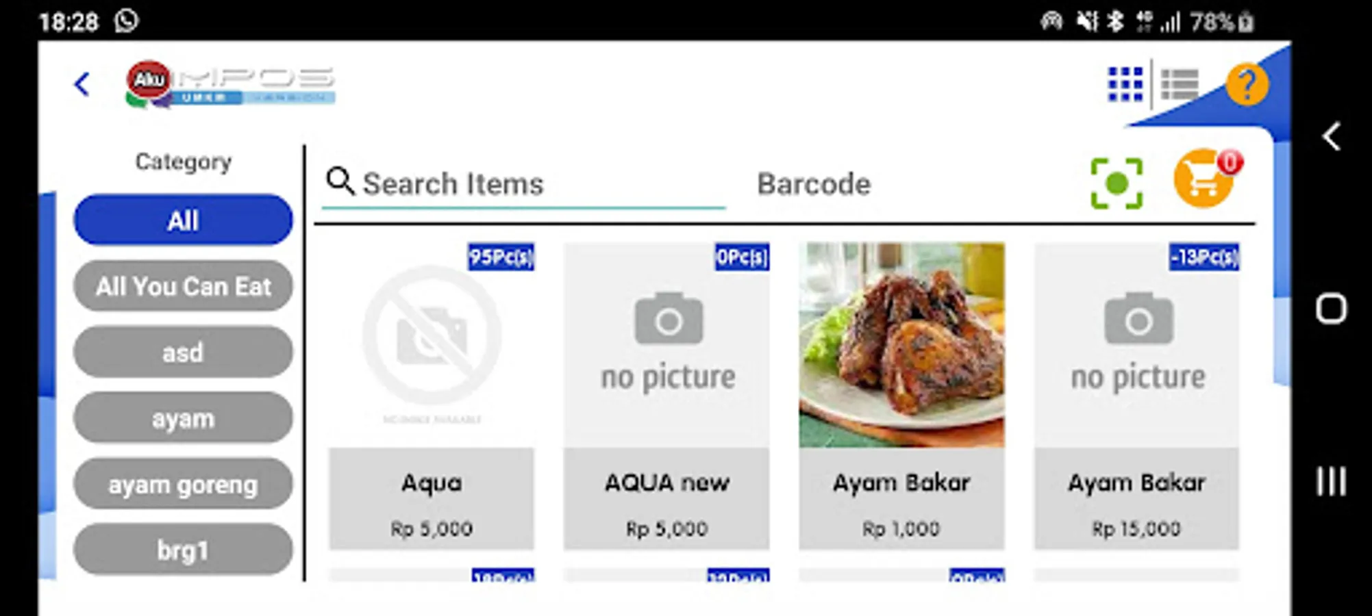 AKU MPOS UMKM is a cashier application to manage your shop's daily transactions. To make it easier for stores to accept and manage transactions of all customers in real time. AKU MPOS UMKM also accepts online payments which make it easier for your customers to process transactions. AKU MPOS UMKM is usually used at Foodcourt or Festivals.