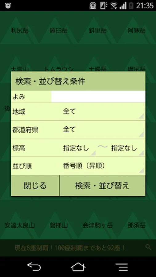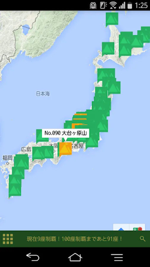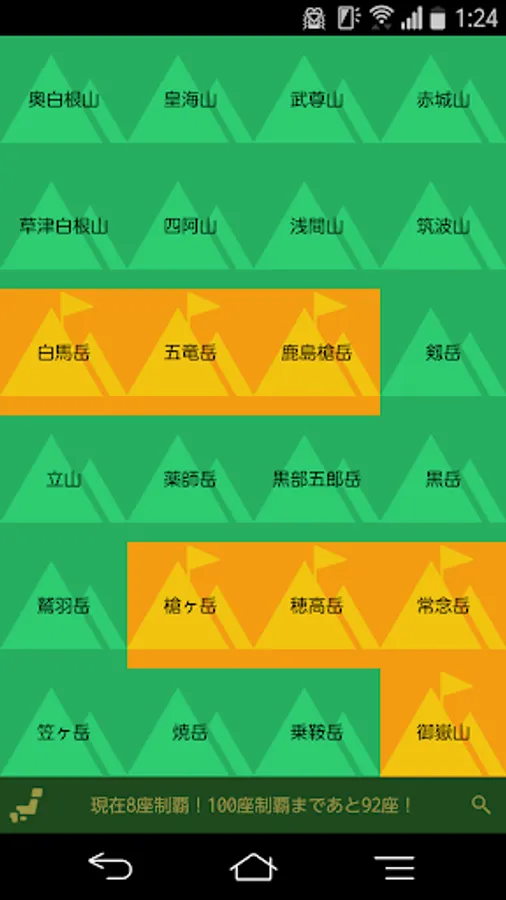 ・一覧の下には今いくつ登ったかが表示されます。100座目指して頑張りましょう!