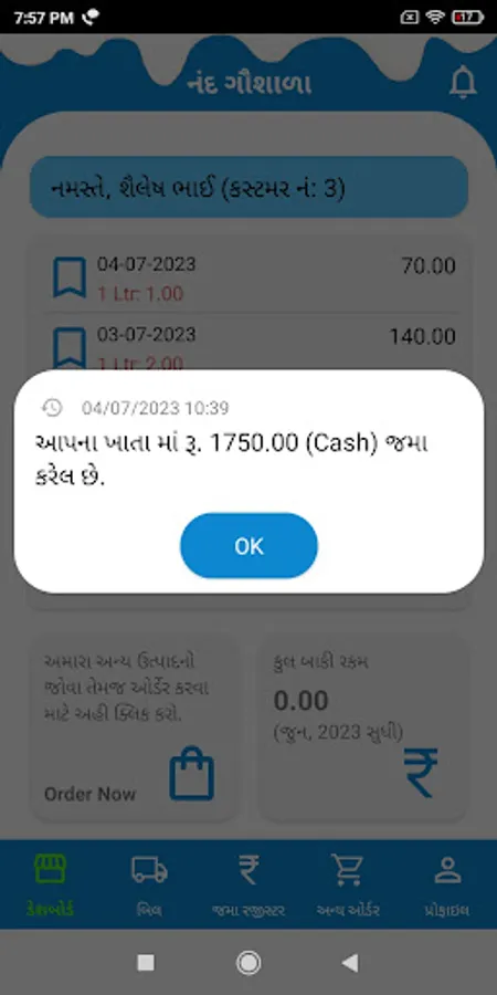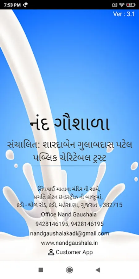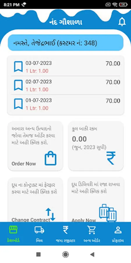 Nand Gaushala - Customer Application is design for our registered customers by which they can manage their daily milk subscription, view delivery history, view/download Monthly Subscription Bill and Credit History by their own. Customer can also order for other organic products available with us and get door step delivery. this app is used for hassle free regular delivery with all delivery and payment records at fingertips.