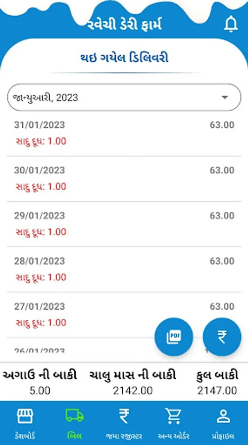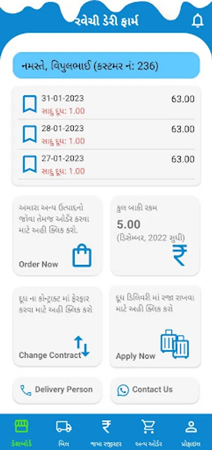 Ravechi Dairy Farm - Customer Application is design for our registered customers by which they can manage their daily milk subscription, view delivery history, view/download Monthly Subscription Bill and Credit receipts by their own. Customer can also order for other dairy products available with us and get door step delivery and make a quick payment for their monthly bill. this app is used for hassle free regular delivery with all delivery and payment records at fingertips.