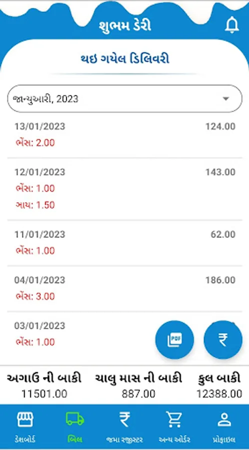 Shubham Dairy - Customer Application is design for our registered customers by which they can manage their daily milk subscription, view delivery history, view/download Monthly Subscription Bill and Credit History by their own. Customer can also order for other dairy products available with us and get door step delivery and make a quick payment for their monthly bill. this app is used for hassle free regular delivery with all delivery and payment records at fingertips.