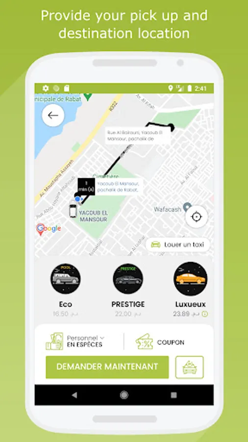 - L'application utilise votre position pour que votre chauffeur sache où vous chercher.