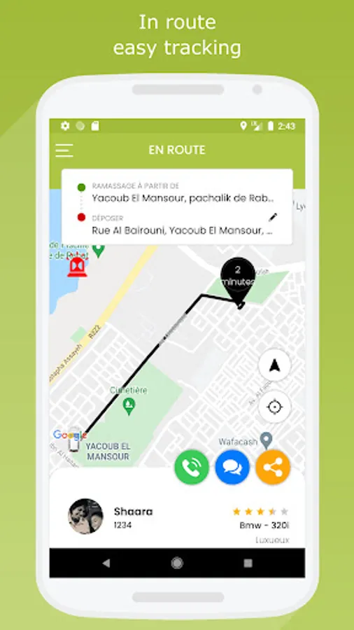- Vous verrez la photo de votre chauffeur, les détails du véhicule et pourrez suivre leur arrivée sur la carte.