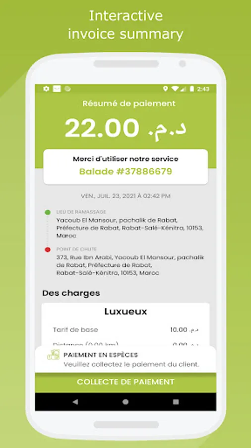 - Après le trajet, vous pouvez évaluer votre chauffeur et fournir des commentaires pour nous aider à améliorer l'expérience Saide. Vous recevrez également un reçu par e-mail.