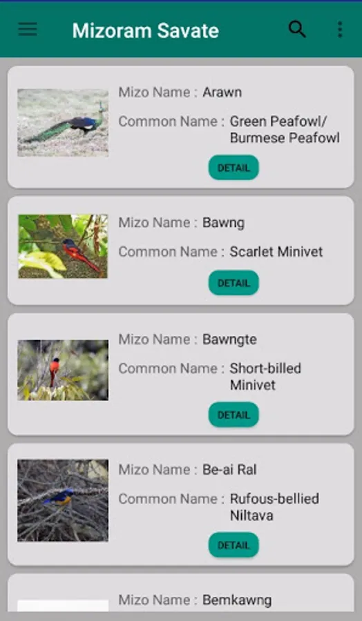 He application-ah hian Mizorama Savate an common name, scientific name etc. te kan ti lang a ni. Search atang hian Mizo hming leh common name hmang hian a zawn theih ve ve a ni. Hmang tangkai in awm ngei kan beisei e.