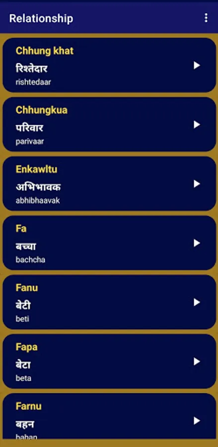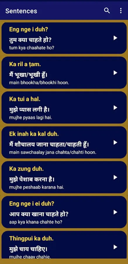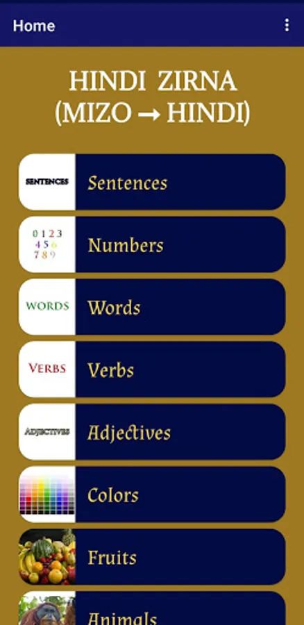 He application-ah hian Mizo sentences, words leh a dangte, Hindi a sawi tir chhin theihna dah a ni. A common zualpui ni a kan hriatte kan han dah phawt a ni a, la update leh zel tum a ni.