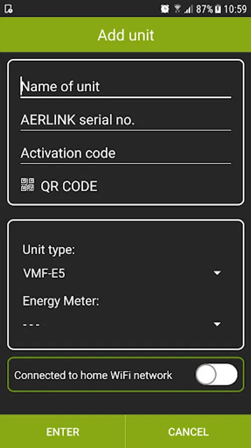 To associate a system with a device, first of all assign it a name. You will then be asked to supply the AERLINK serial number of the single device, and the relative activation code. This is followed by a request for the SSID of the wi-fi that you want to connect the AerLink module to, along with the relative password.