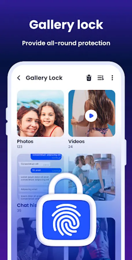 Hide Personal Files - Hide your private photos and videos in Gallery Lock. No one can view them without the password.