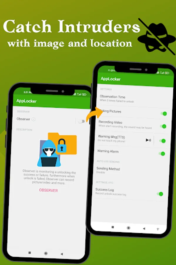 Catch Intruders: With App Locker, you can catch intruders who try to access your apps by taking a picture of them with the front camera and sending it to your email.