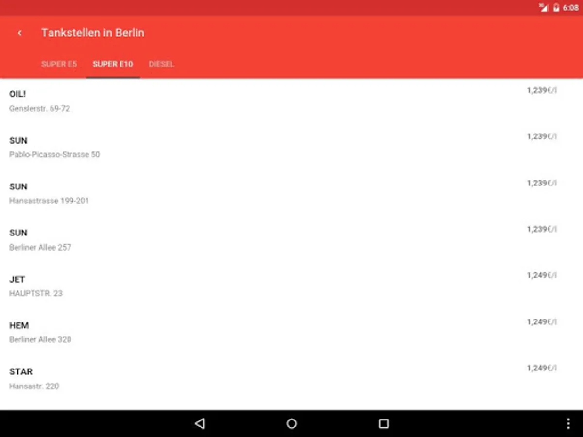 This fuel price app you can compare the prices of petrol filling stations in your area. The prices of Super E5, E10 and Super Diesel are displayed.