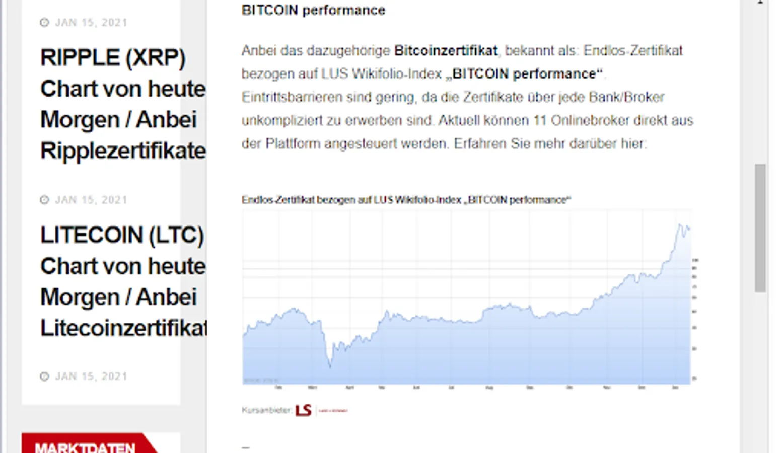 Also attached are the current charts of the associated LUS wikifolio endless crypto certificates. Investing in these certificates is very easy and uncomplicated via the online banks.
