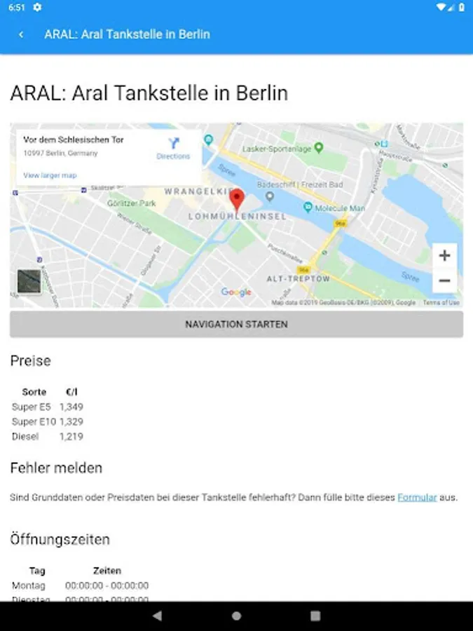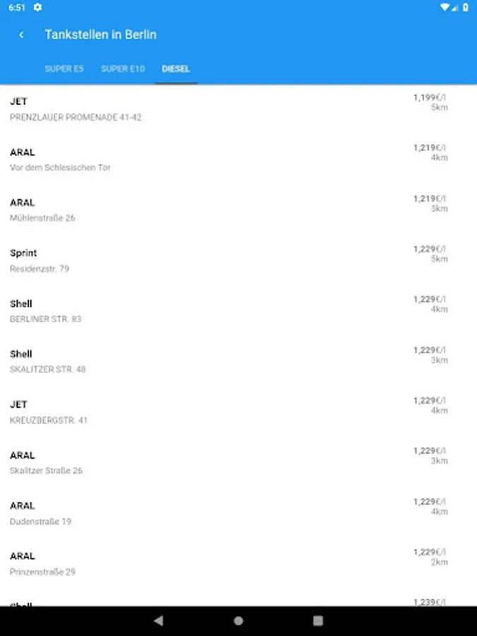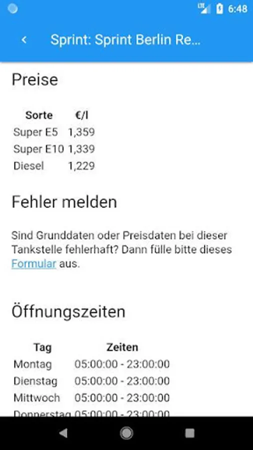 With this app you can call up the fuel prices of German petrol stations. Super E5, Super E10 and Diesel are supported.