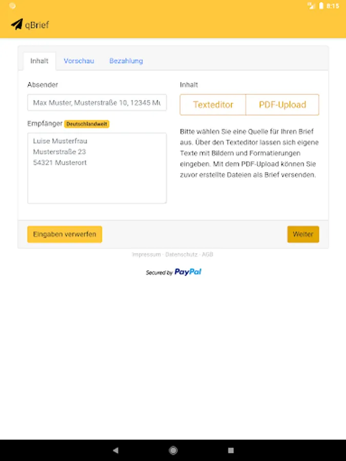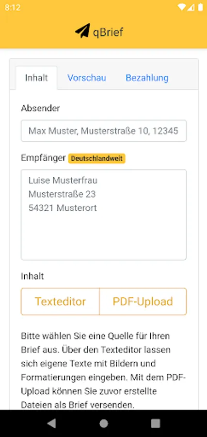 Write a letter on your mobile and have it sent by post. qBrief creates your letter and sends it to Deutsche Post.