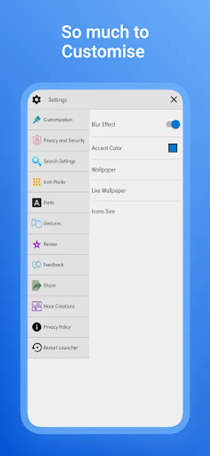 There are many things to customize on our Android launcher app. Download it and enjoy it for FREE today!