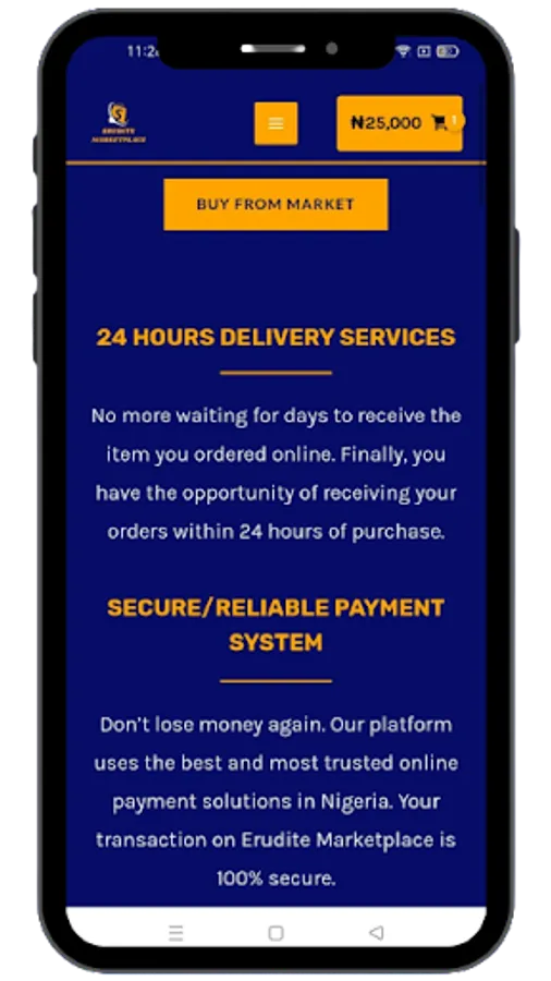 Erudite Marketplace is a hybrid marketplace for markets in Africa. Finally, you have the opportunity of receiving your orders within 24 hours of purchase. No more waiting for days to receive the item you ordered online. Our Platform uses the best and most trusted online payment solutions in Nigeria, your transactions on Erudite Marketplace are 100% secure, you don't have to lose money online again. We also ensure that customers who receive substandard or fake products are fully refunded. Don't miss out! others are already enjoying the benefits of shopping on our platform, saving money and time, buying from producers and major distributors of products in major markets around you.