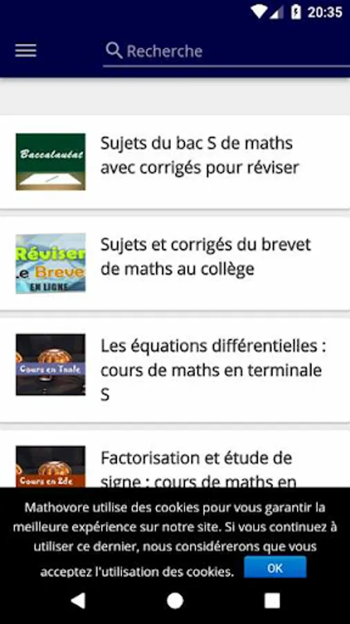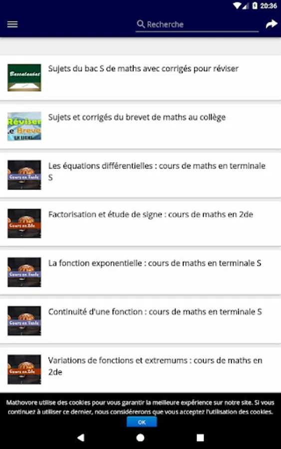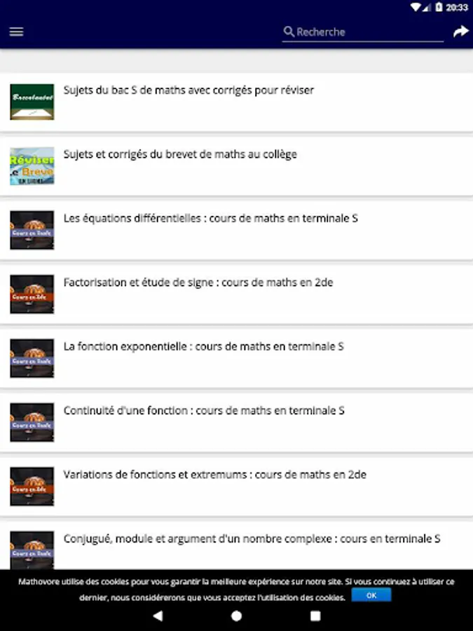 All courses for high school and high school students but also more than 1500 corrected exercises from the sixth to the final year. The subjects of the patent and the bachelor of mathematics are also in line with Mathovore.