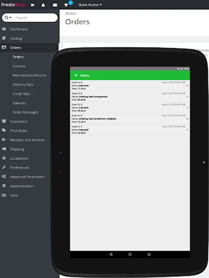 With the Administrator for PrestaShop you can manage your online store via a mobile device.