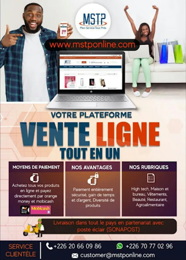 Traders and managers of SMEs / SMIs more worries for the promotion and sale of your articles and products. Simply choose MSTP! The new platform for buying and selling online. You can sell your High Tech items, furniture, beauty products, ready-to-wear or haute couture items, food and food products.