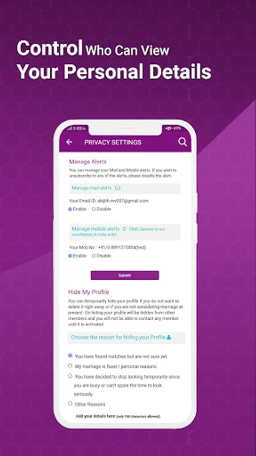 Clarifying lifestyle, hobbies, career, and aspirations for the future is an important aspect of communication within a matrimonial alliance. Communication between two people is necessary, not a third person. It is your life and your expressions that count. Chavara Matrimonial App allows you to design your profile the way you want so that you can fully express yourself.