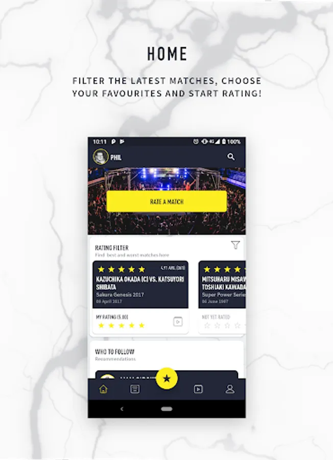 - Rate how much you enjoyed the matches you've watched