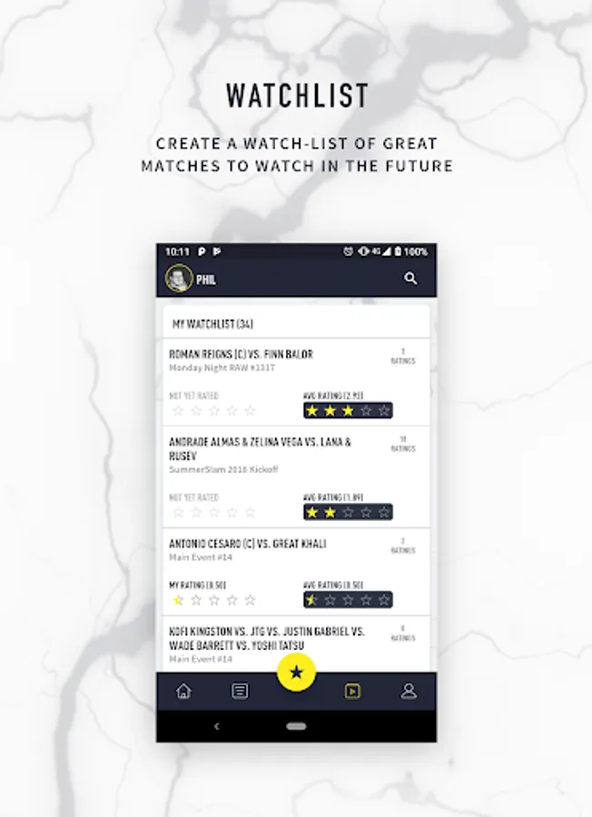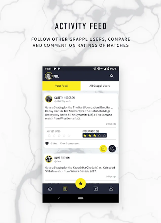You can discover and talk about the best matches from promotions and wrestlers from around the world by easily seeing which have been rated the highest (and lowest) by fans.