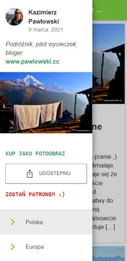 I am a traveler, tour leader and blogger. Travel and photography are my profession and my job. I show the world realistically, taking groups on a journey. But also describing the world virtually on the blog. Every day I publish one of my photos - showing the beauty of this world, along with a short description. I invite you to this virtual tour in the application.