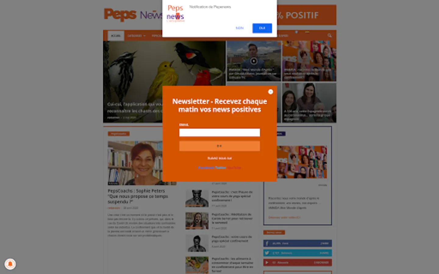 The story: Initiated by Eric Angioletti, journalist and Director of group information (NRJ, Chérie FM, Nostalgia), Director of programs of NRJ and director of programs for Europe 1 who believes that the treatment of news is too anxiety-provoking, Pepsnews is a positive participative information site.