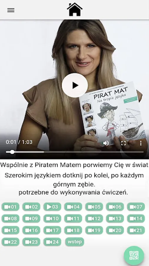 Speech therapy application which, in combination with the book Pirat Mat Na tropie ... supports the proper development of speech. It contains instructional speech therapy exercises performed by a speech therapist. Under each video you will find and hear how to perform a given exercise and what to pay special attention to.