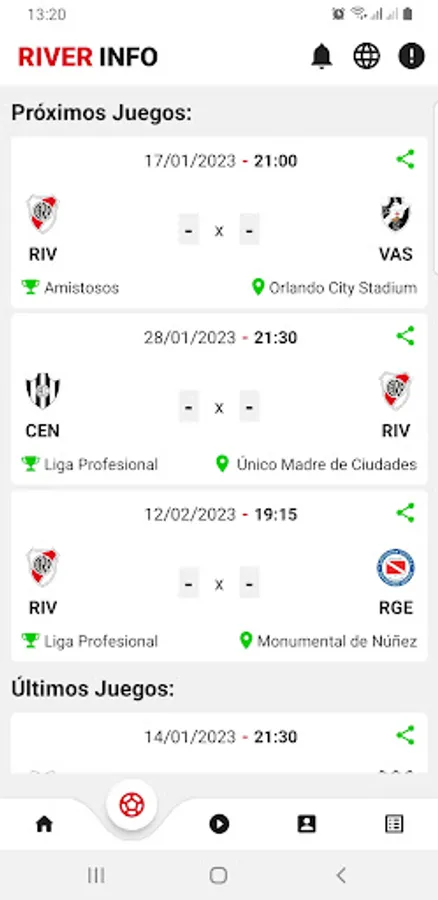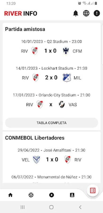 With River Info - You will receive River Plate News and River Plate Live Matches in Real Time, you will have all the River Plate news, in addition to following all the River Plate Live matches in Real Time.