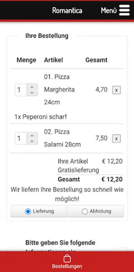 Pizza delivery service in Duisburg