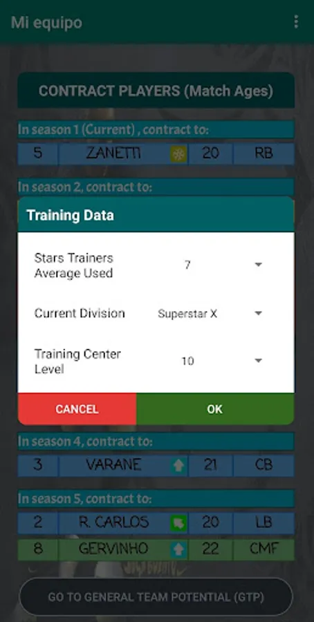 From the information provided, such as age, evolution, type of player, player stars, level of the training center, among others, you will be able to obtain the estimated general team potential (GTP) for your team.