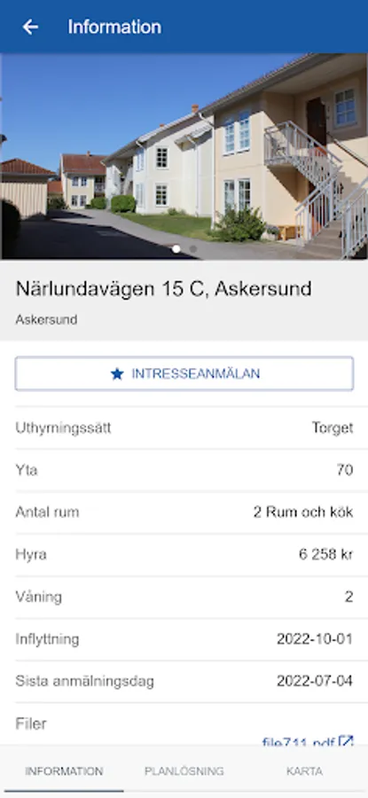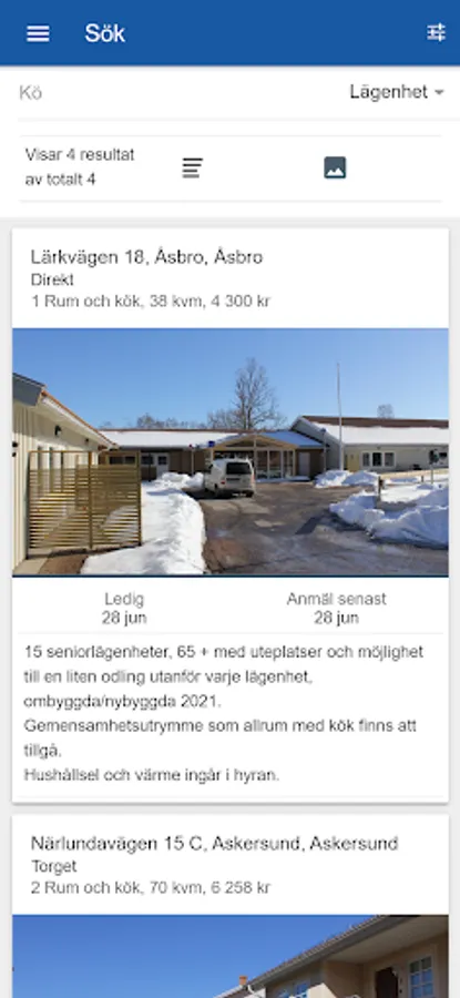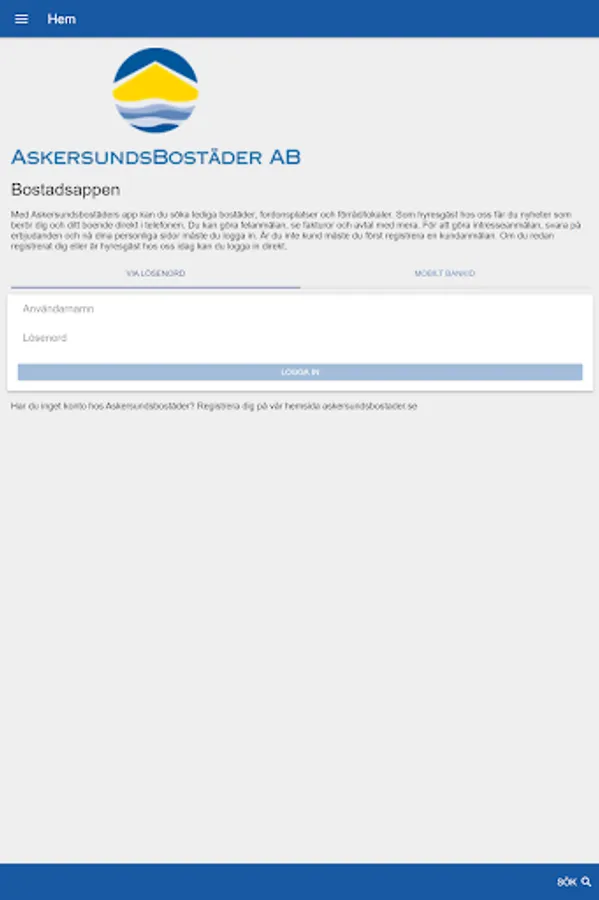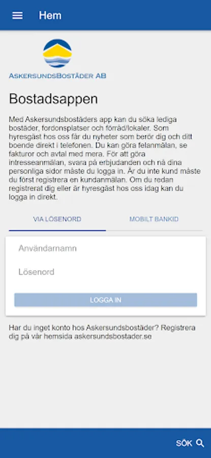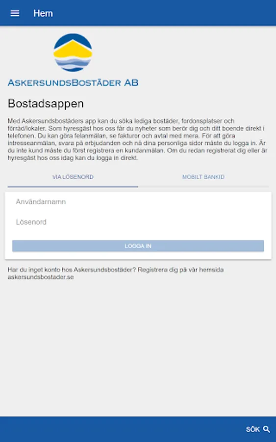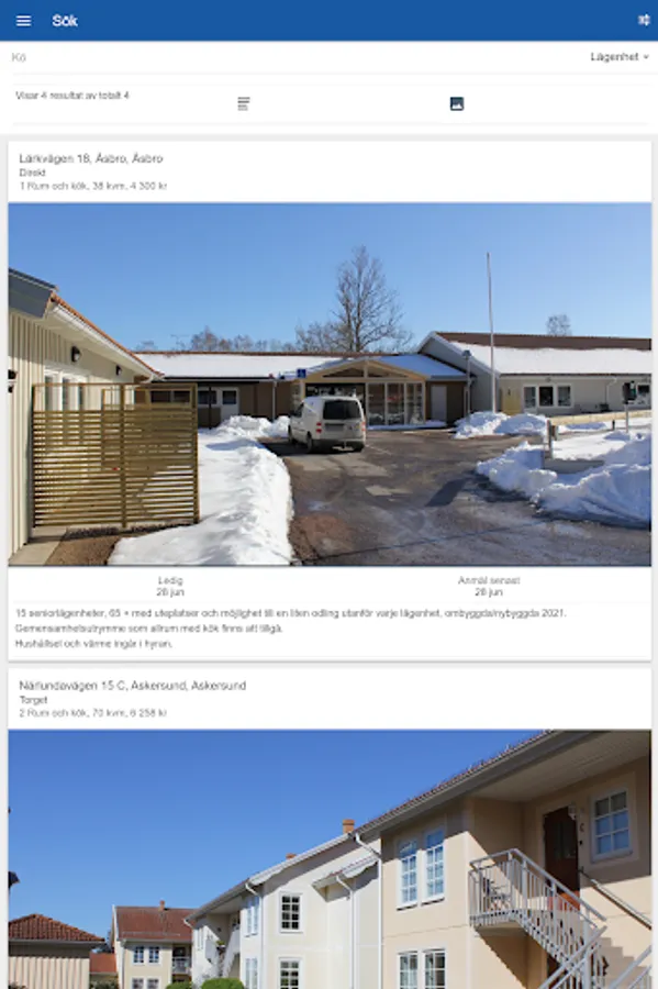 With Askersundsbostäder's app you can search for vacant housing, vehicle spaces and storage / premises.