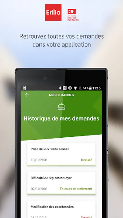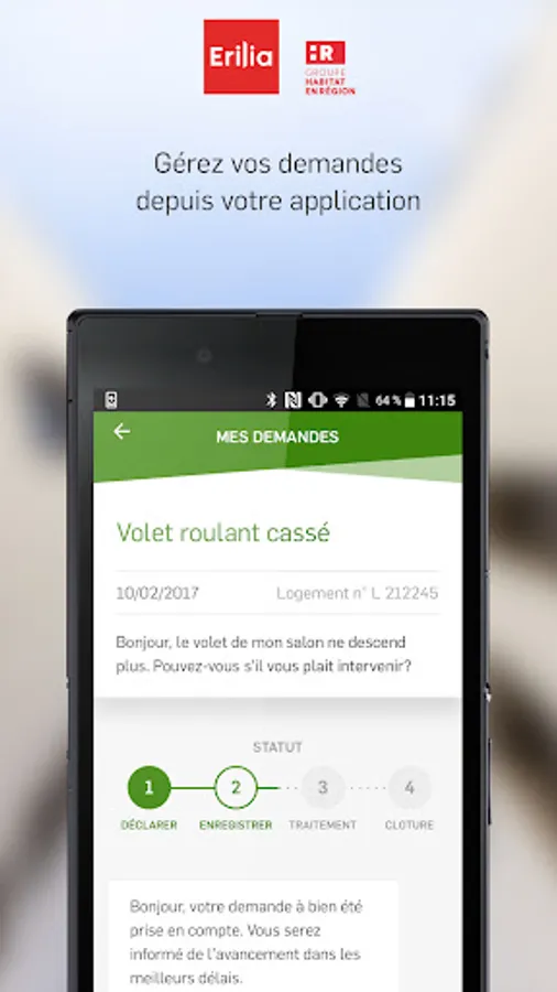 Customer Erilia, with the application "Even to Me" quick access to key features of your tenant space and receive notifications to be notified in real time. At Erilia, we like to make your life easier!