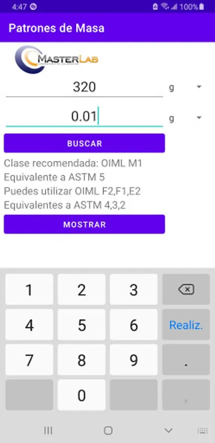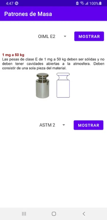Selection of OIML or ASTM class mass standards for the calibration of weight indicators